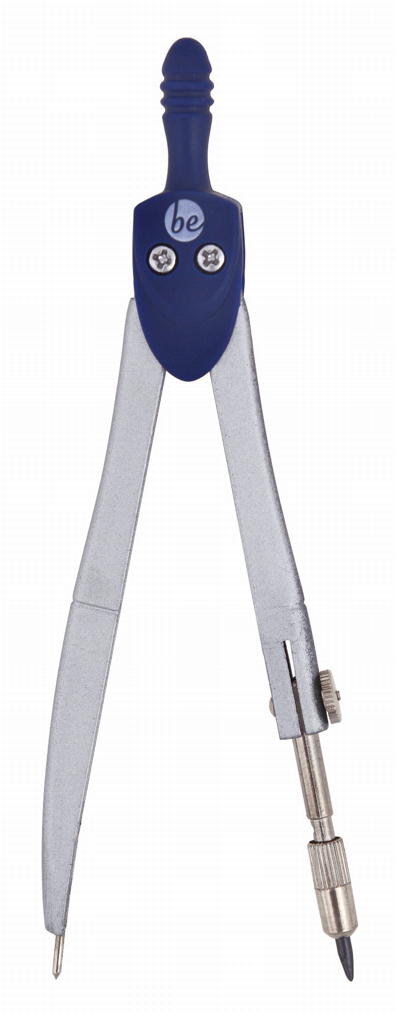 Metalowy cyrkiel z regulacją kąta nachylenia grafitu. Solidny mechanizm regulacji promienia