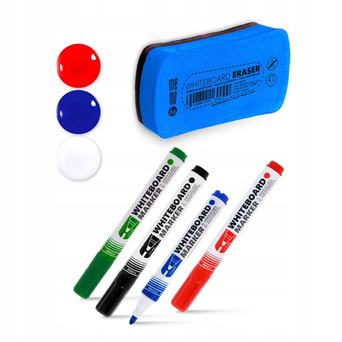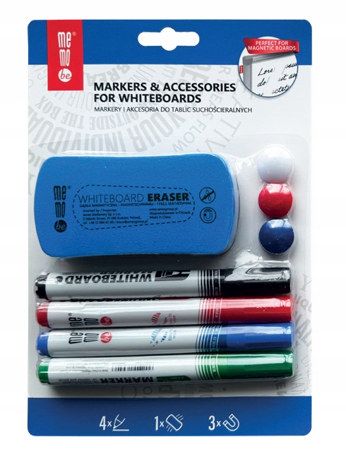 Markery do tablic suchościeralnych + gąbka + magnesy ZESTAW MemoBe